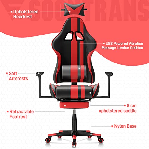 Soontrans Sedia da Gaming Massaggiante, Ergonomico Sedia Gaming con Supporto Lumbare Massaggio Vibratorio & Poggiapiedi & Poggiatesta, Poltrona da Gaming per Youtube Livestreaming Xbox (Rosso)