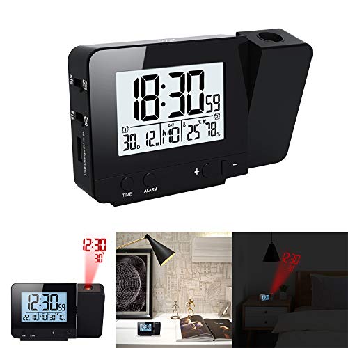 SOOTOP Proiettore Sveglia con Schermo LED Sveglia Girevole con Proiezione Retroilluminata Umidità e Temperatura per Camera Familiare (Nero)