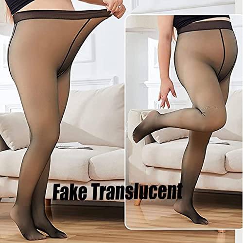 Sopaeduon Collant Foderati in Pile da Donna Leggings Termici traslucidi Finti Collant Invernali Trasparenti e Caldi (Black-Pantyhose,220g)