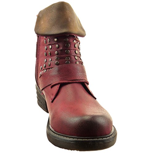 Sopily - Scarpe da Moda Stivaletti - Scarponcini Biker Donna Borchiati Zip Tacco a Blocco 4 CM - Rosso