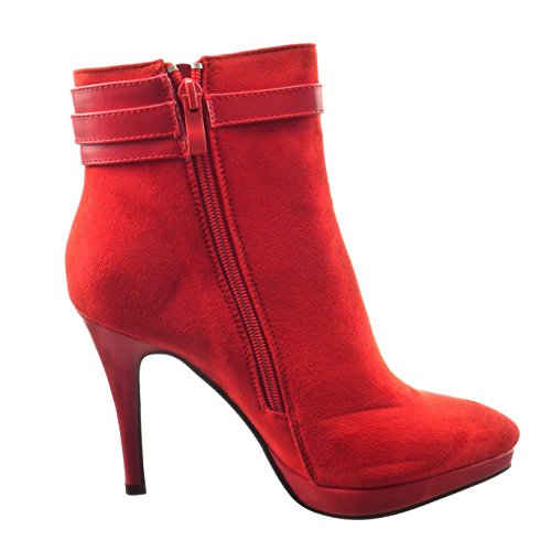 Sopily - Scarpe da Moda Stivaletti - Scarponcini Zeppe alla Caviglia Donna Fibbia Gioielli Tacco a Blocco Tacco Alto 10.5 CM - Soletta Sintetico - Foderato di Pelliccia - Rosso WLD-7-G200-6 T 39