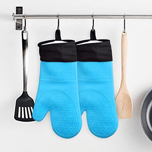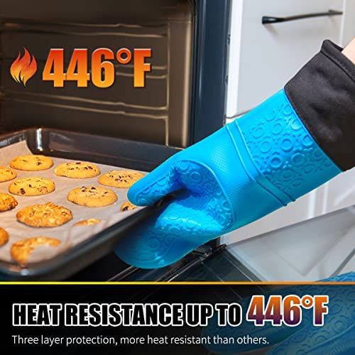 Sopito Guanti Forno Silicone, Guanti da Forno Resistente al Calore Extra Lungo Antiscivolo (Blu, 1 Paio)