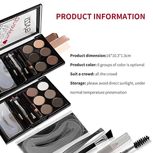 Kit Sopracciglia 6 Colori, Matita Sopracciglia Marrone, Pennello e Stampo Sopracciglia in uno, Ideal Eyebrow Powder Kit Sopracciglia Perfette (01)