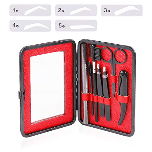 Kit per la toelettatura delle sopracciglia - Il set per la cura delle sopracciglia LUVODI contiene 13 strumenti e accessori, tra cui pinzette oblique, pinzette piatte, forbici, rasoio, stencil, matita e pennello. Tutti i pezzi sono forniti in una lussuosa custodia in pelle con uno specchio HD che è utile per ritocchi quando si è fuori.