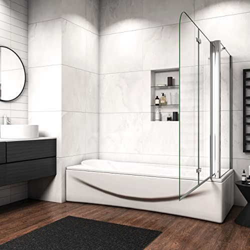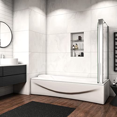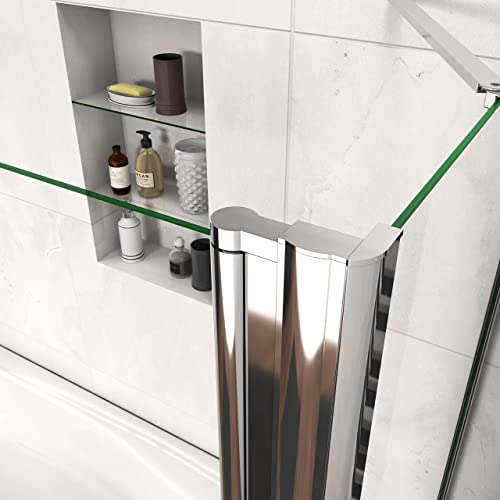 Sopravasca Angolare 120x80 cm Alta 140cm Vetro Temperato Trasparente Anticalcare 6 mm Parete Fissa Barra Stabilizzatrice