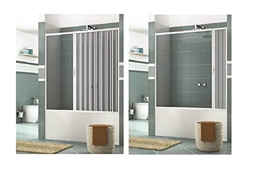 Sopravasca Box Vasca in PVC Nicchia Larghezza 140-200 cm, H 150 cm mod. ASIA, Bianco, apertura laterale anta a soffietto e reversibile