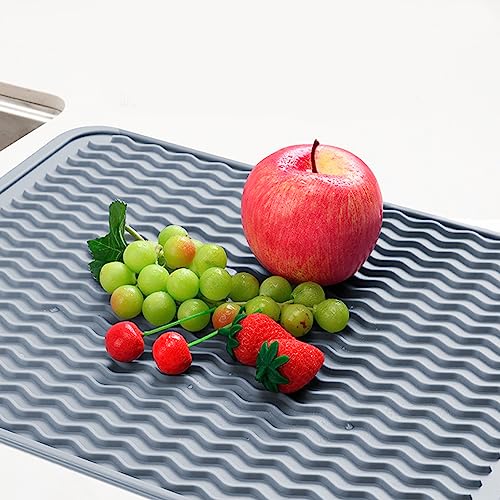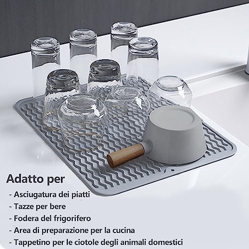 SOQKEEN Tappetino Scolapiatti in Silicone, 40 × 30 cm Scolapiatti da Appoggio per Lavello, Scolapiatti per Stoviglie, Tappetino Antiscivolo per Asciugatura Resistente al Calore, Grigio chiaro
