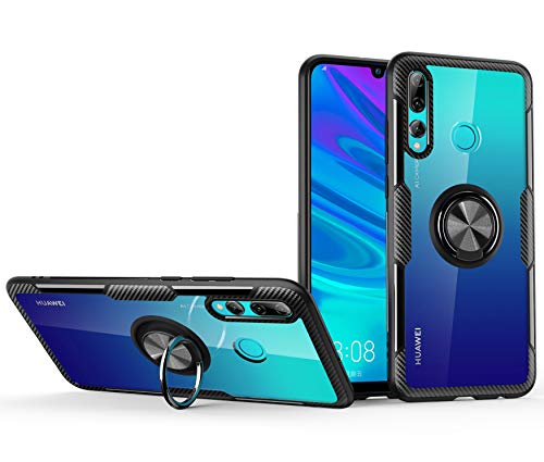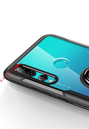 SORAKA Cover Trasparente per Honor 20 Lite con Supporto anello,Cover trasparente Hard PC+Paraurti in silicone,con piastra metallica per Supporto Auto Smartphone Magnetico