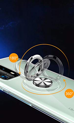 SORAKA Cover trasparente per Huawei P40 Pro con anello rotante a 360 gradi e piastra metallica compatibile con Supporto Auto Smartphone Magnetico custodia in TPU trasparente Ultrasottile
