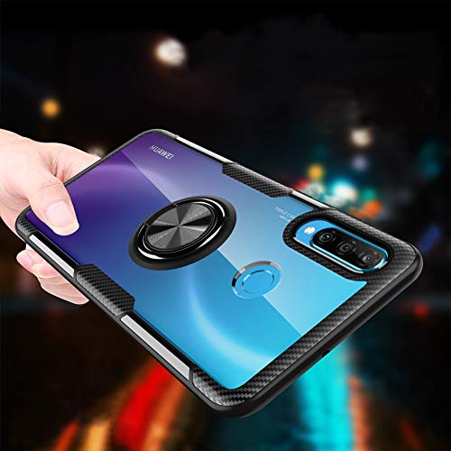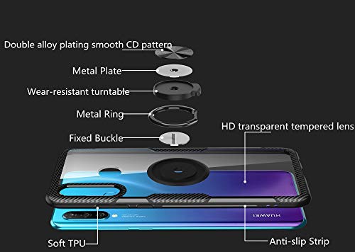 SORAKA Cover Trasparente per Huawei P30 Lite con Supporto anello,Cover trasparente Hard PC+Paraurti in silicone,con piastra metallica per Supporto Auto Smartphone Magnetico