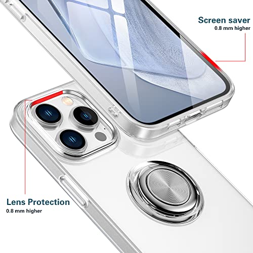SORAKA Cover trasparente per iPhone 14 Pro Max con anello rotante a 360 gradi e piastra metallica per Supporto Auto Smartphone Magnetico,Custodia in TPU trasparente Ultrasottile