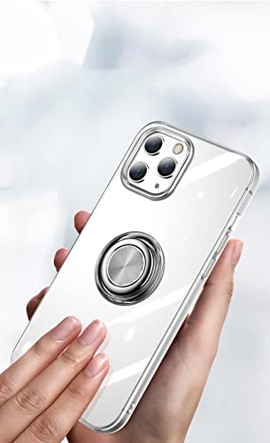 SORAKA Cover trasparente per iPhone 11 Pro con anello rotante a 360 gradi e piastra metallica per Supporto Auto Smartphone Magnetico,Custodia in TPU trasparente Ultrasottile