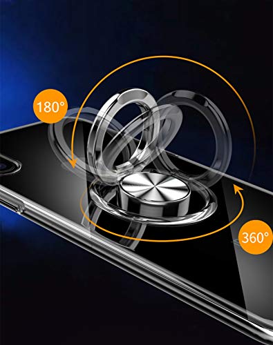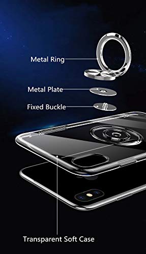 SORAKA Cover trasparente per iPhone Xs/iPhone X con anello rotante a 360 gradi e piastra metallica per Supporto Auto Smartphone Magnetico,Custodia in TPU trasparente Ultrasottile
