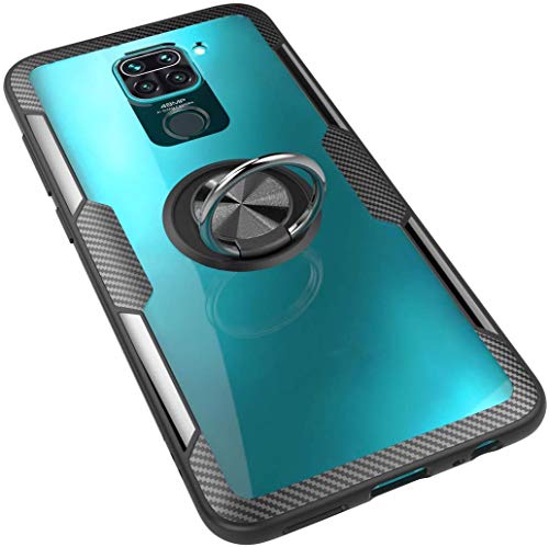 Custodia trasparente compatibile con Xiaomi Redmi Note 9 con anello e piastra metallica.