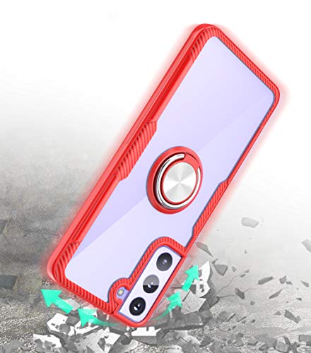 SORAKA Cover Trasparente per Samsung Galaxy S21+ 5G con Supporto anello,Cover trasparente Hard PC+Paraurti in silicone,con piastra metallica per Supporto Auto Smartphone Magnetico