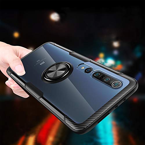 SORAKA Cover Trasparente per Xiaomi Mi 10/Mi 10 Pro con Supporto anello rotante a 360 gradi,Cover trasparente Hard PC+Paraurti in silicone,con piastra metallica per Supporto Auto Smartphone Magnetico