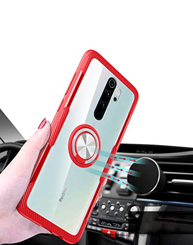 SORAKA Cover Trasparente per Xiaomi Redmi Note 8 Pro con Supporto anello rotante a 360 gradi Cover trasparente Hard PC+Paraurti TPU con piastra metallica per Supporto Auto Smartphone Magnetico
