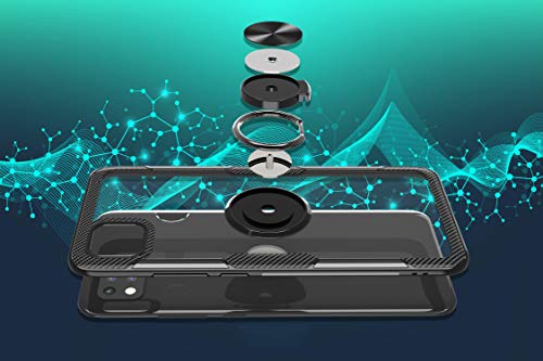SORAKA Cover Trasparente per Xiaomi Redmi 9C con Supporto anello,Cover trasparente Hard PC+Paraurti in silicone,con piastra metallica per Supporto Auto Smartphone Magnetico