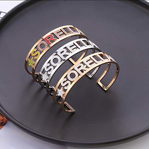 Sorella (Sister) Bracciale Rigido da Donna, Oro Rosa e Argento Placcato in Acciaio Inossidabile con Ciondolo a Forma di c Polsino da Polso con Regalo in Cristallo colorato per Gli Amici