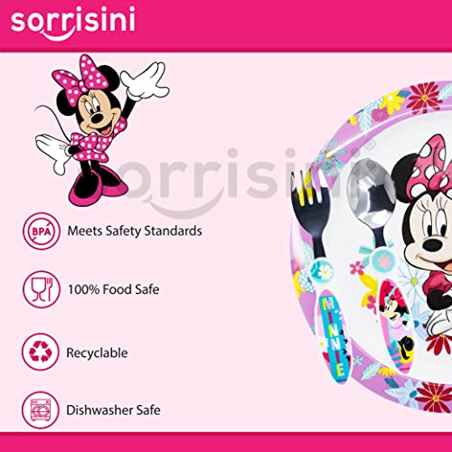 Sorrisini-Minnie Mouse Set di 2 posate per bambini forchetta+cucchiaio in acciaio INOX+piatto | Set di stoviglie per bambini | Set da tavola riutilizzabile per bambini | Set da colazione per bambini