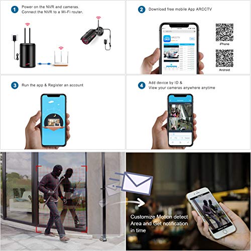 【SUPER VISIONE NOTTURNA】Videocamera sorveglianza attiva automaticamente la modalità di visione notturna in condizioni di scarsa illuminazione. Adotta 36 lampadine LED IR, puoi vedere chiaramente l'immagine da 50 a 80 piedi di notte. Con la tecnologia avanzata di rilevamento di movimento, qualsiasi movimento sospetta nel raggio di rilevamento è informato a te e inviata al tuo smartphone tramite l'app, puoi controllare la situazione di monitoraggio in qualsiasi momento.