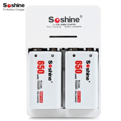 Soshine Caricabatterie a due canali per Batterie 9V Li-Ion/LiFePo4/Ni-MH