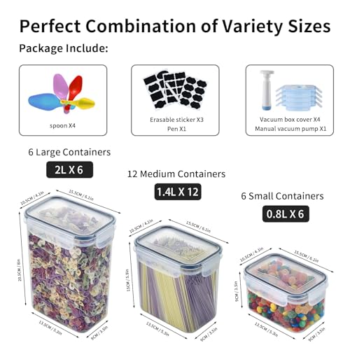 【Cosa Puoi Ottenere】 Riceverai Un Set Contenitore Ermetico Per Alimenti 24 Contenitori Per Alimenti Con Coperchio, 4 Cucchiai Per Misurare, 24 Etichette Nere Riutilizzabili E 1 Pennarello. Incluye 4 tapas de vacío adicionales y una bomba de vacío manual.Contenitori Ermetici Per Pasta Fornito Con 3 Capacità Di, 2.0L, 1.4 L, 0.8 L Per Soddisfare Le Diverse Esigenze Di Archiviazione.