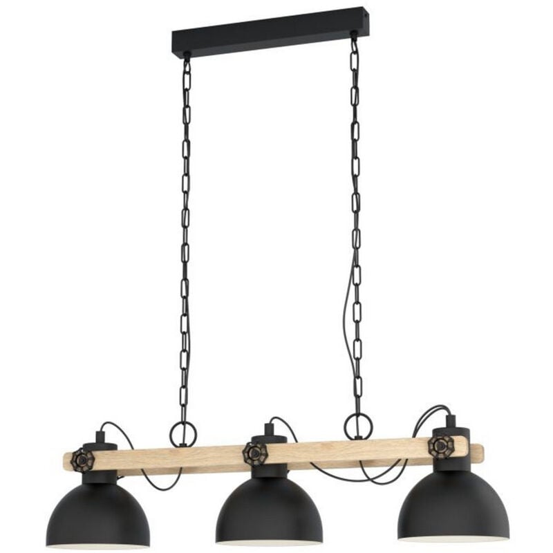 Lampada a sospensione in Legno Lubenham EGLO Lampada a sospensione in legno Lubenham di Eglo realizzata con una struttura in metallo e in legno. Caratteristiche: Modello: Lampada da tavolo Segmento: Interno Materiale struttura: Acciaio e Legno Colore struttura: Nero e Marrone Tipo lampada: E27 Lampada: Esclusa Numero luci: 3 Senza interruttore Batteria: No Dimensioni: Lunghezza: 900 mm Larghezza: 200 mm Altezza: 1100 mm Peso netto: 3,26 Kg Informazioni Tecniche Classe di protezione: 1 Grado di protezione: IP20 Tensione di rete: 220-240V,50/60Hz Tensione di esercizio: 220-240V,50/60Hz Wattaggio max.: 3 X 28W Descrizione: La lampada a sospensione Lubenham trasforma ogni ambiente in uno spazio accogliente e raffinato. Prodotto da Eglo, questo lampadario è caratterizzato da tre paralumi neri orientabili in metallo, con un interno color crema, fissati su un corpo in legno e metallo sospeso da eleganti catene a maglie. Con i suoi paralumi orientabili e il mix di legno e metallo, la lampada