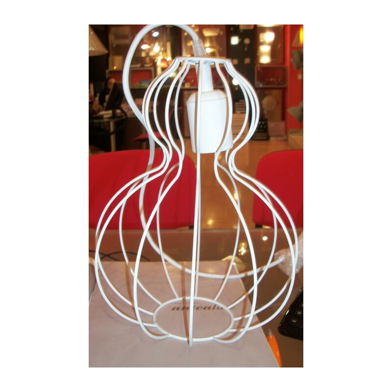 monta una lampadina con attacco e27 max 60w, con possibilita' di utilizzare lampadine led o risparmio energetico. a richiesta e' possibile richedere vari colori del cavo di alimentazione.