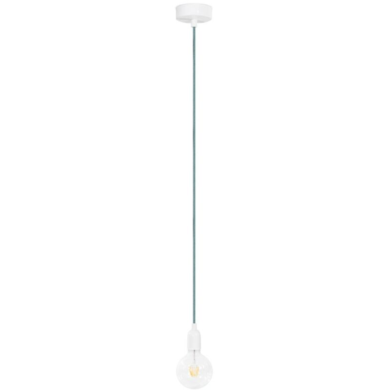 Lampada a sospensione con cavo tessile. Cavo H03VV-F 2 x 0.75 (2 fili) - 1 metro Costruito secondo le norme: CEI 20-20 CEI 20-35 RoHs 1 Rosone per soffitto in metallo diametro 10 cm. 1 Portalampada con attacco E27 Prodotto per uso interno. Made in Italy