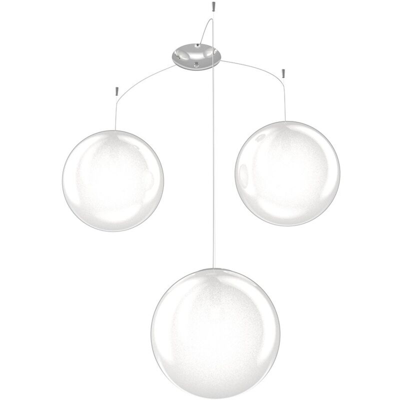 Collezione Glitter LAMPADE CHE SCINTILLANO DI LUCE E CLASSE Sospensione composta da una tre sfere in vetro soffiato trasparente dal diametro di 30cm e con decentratori.. Tutte le sospensioni sono regolabili in altezza in quanto dotate di dispositivi serracavo automatici. La finitura graniglia è realizzata mediante l'applicazione di granuli di vetro sul vetro trasparente che, una volta illuminato, lo rendono brillante. Le strutture in metallo sono cromate. La Serie Glitter è disponibile in diverse dimensioni e colori, per abbellire ogni ambiente con stile e raffinatezza. Scopri la Serie Glitter e lasciati incantare dalla sua bellezza e qualità.Questo articolo è disponibile in diverse finiture e/o dimensioni. E' possibile indicarlo nell'apposito campo NOTE presente in conclusione di ordine oppure contattarci dopo aver effettuatol'ordine.