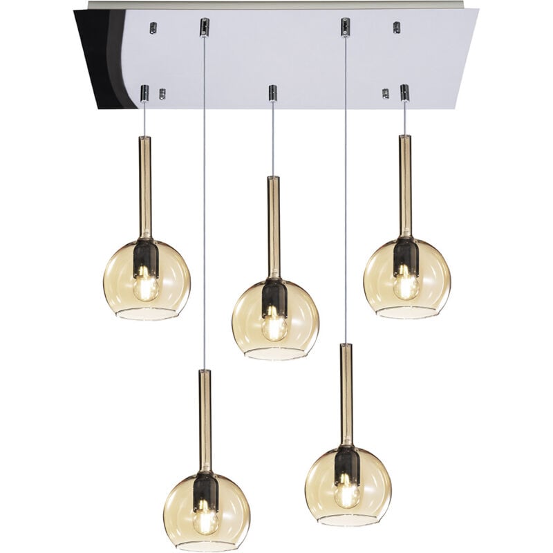 Collezione Future IL FUTURO DELLA LUCE È ADESSO Sospensione 5 luci dal rosone rettangolare con struttura in metallo finitura cromo e da 5 vetri di uguale dimensione colore ambra.. Le finiture dei vetri cromo, rame, oro e ambra sono trattamenti superficiali che riducono solo parzialmente l'emissione luminosa. La finitura trasparente può essere naturalmente abbinata alle altre. Le strutture in metallo sono disponibili nelle finiture cromo, bianco e ottone satinato, con il diffusore in vetro disponibile in tutte le finiture esistenti.Possibilità di creare una composizione componibile in base ai componenti della sospensione scelti.Questo articolo è disponibile in diverse finiture e/o dimensioni. E' possibile indicarlo nell'apposito campo NOTE presente in conclusione di ordine oppure contattarci dopo aver effettuatol'ordine.