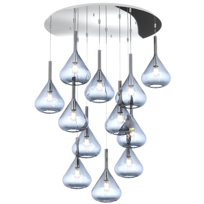 Collezione Kona LAMPADA MODERNA CHE CATTURA LO SGUARDO Sospensione 12 luci con struttura in metallo color cromo, un rosone tondo e 12 vetri pirex soffiato colore blu come diffusore.. Le finiture dei vetri disponibili sono trasparente, verde, blu, fumè ed ambra. Le strutture in metallo sono disponibili nelle finiture cromo, bianco e ottone satinato. Nella confezione sarà compreso il portalampada nelle finiture cromo, otttone satinato e bianco, dove il cliente al momento dell' installazione sarà libero di scegliere il colore desiderato.Questo articolo è disponibile in diverse finiture e/o dimensioni. E' possibile indicarlo nell'apposito campo NOTE presente in conclusione di ordine oppure contattarci dopo aver effettuatol'ordine.