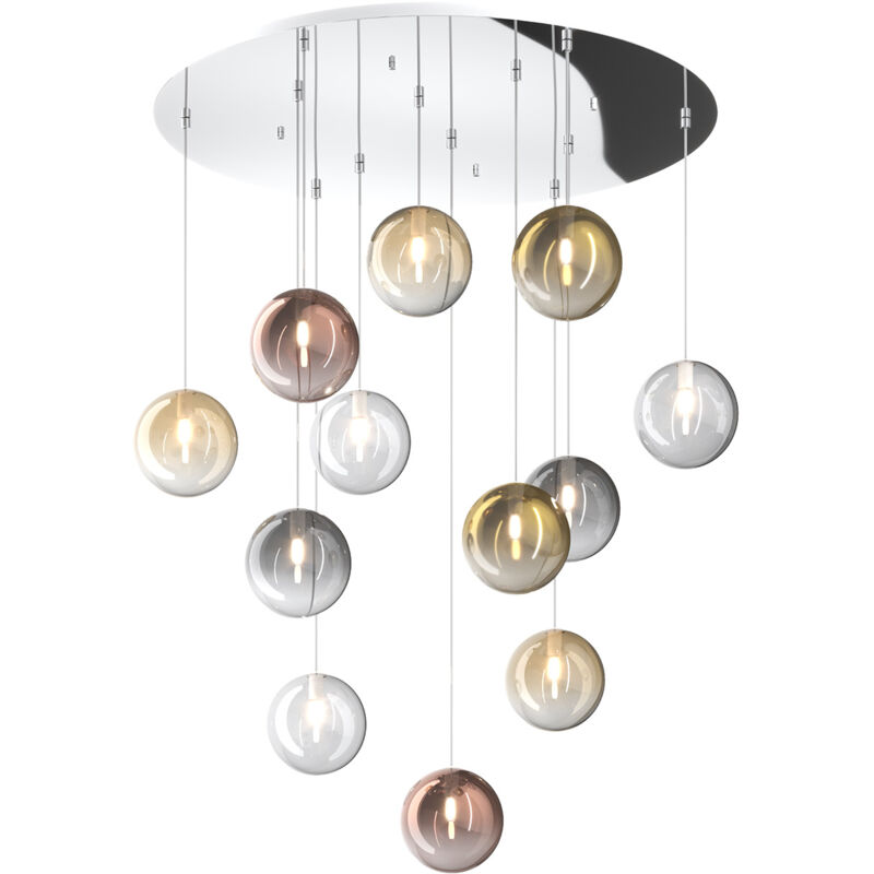 Collezione Eclipse IL BENVENUTO ALLA LUCE Sospensione 12 luci regolabile in altezza, composta da una struttura metallo bianco, un rosone tondo e sfere di vetro pirex finitura multicolor.. La finitura dei vetri si presenta omogenea nelle versioni trasparente e bianco fog oppure sfumata verso il basso nelle versione ambra, rame, oro e fumè. Le strutture in metallo sono disponibili nelle finiture cromo, bianco e ottone satinato.Questo articolo è disponibile in diverse finiture e/o dimensioni. E' possibile indicarlo nell'apposito campo NOTE presente in conclusione di ordine oppure contattarci dopo aver effettuatol'ordine.
