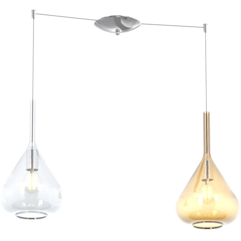Collezione Kona LAMPADA MODERNA CHE CATTURA LO SGUARDO Sospensione 2 luci con struttura in metallo color cromo, un rosone tondo con decentratori e 2 vetri pirex soffiato colore trasparente ed ambra come diffusore.. Le finiture dei vetri disponibili sono trasparente, verde, blu, fumè ed ambra. Le strutture in metallo sono disponibili nelle finiture cromo, bianco e ottone satinato. Nella confezione sarà compreso il portalampada nelle finiture cromo, otttone satinato e bianco, dove il cliente al momento dell' installazione sarà libero di scegliere il colore desiderato.Questo articolo è disponibile in diverse finiture e/o dimensioni. E' possibile indicarlo nell'apposito campo NOTE presente in conclusione di ordine oppure contattarci dopo aver effettuatol'ordine.