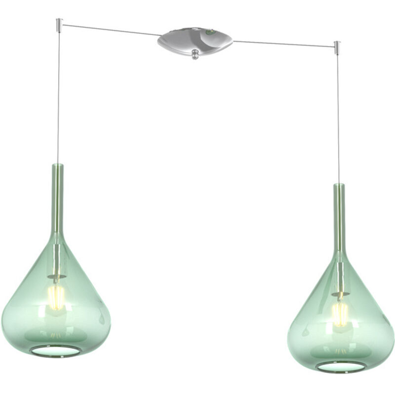 Collezione Kona LAMPADA MODERNA CHE CATTURA LO SGUARDO Sospensione 2 luci con struttura in metallo color cromo, un rosone tondo con decentratori e 2 vetri pirex soffiato colore verde come diffusore.. Le finiture dei vetri disponibili sono trasparente, verde, blu, fumè ed ambra. Le strutture in metallo sono disponibili nelle finiture cromo, bianco e ottone satinato. Nella confezione sarà compreso il portalampada nelle finiture cromo, otttone satinato e bianco, dove il cliente al momento dell' installazione sarà libero di scegliere il colore desiderato.Questo articolo è disponibile in diverse finiture e/o dimensioni. E' possibile indicarlo nell'apposito campo NOTE presente in conclusione di ordine oppure contattarci dopo aver effettuatol'ordine.