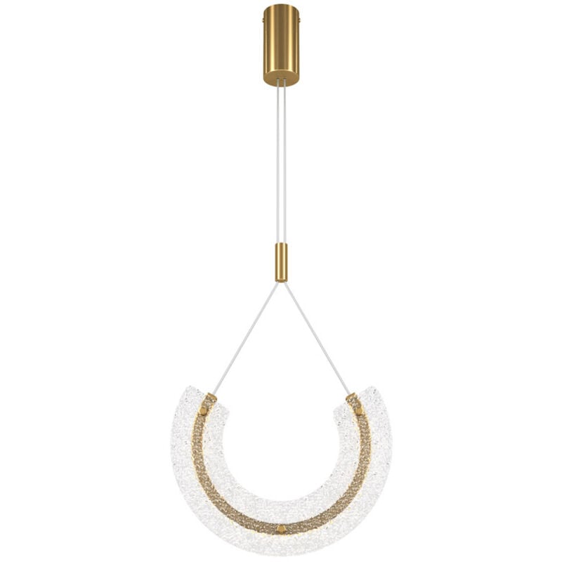 Collezione Maya UN DESIGN CHE TI SORPRENDERÀ PER LA SUA FUNZIONALITÀ Sospensione contemporanea serie Maya con struttura in alluminio colore oro e 1 luce con diffusore in vetro.. È un pezzo di illuminazione d'interno che si distingue per il suo design ispirato ai gioielli mesoamericani. L'attenzione al dettaglio è evidente nella scelta del diffusore in vetro trasparente strutturato che contribuisce ad un'illuminazione morbida e uniforme, oltre a garantire un'illuminazione di qualità, dona alla sospensione un aspetto luccicante e prezioso, che si abbina perfettamente all'armatura in metallo color oro. La sospensione contemporanea Maya presenta una sorgente luminosa a LED, che garantisce un'illuminazione di alta qualità e un consumo energetico ridotto. La temperatura di colore di 3000K contribuisce a creare un'illuminazione calda e accogliente, ideale per creare l'atmosfera giusta in qualsiasi stanza.