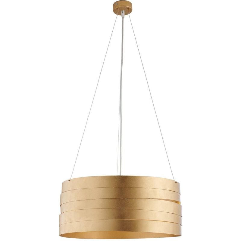 Sospensione ferro laccato bianco con decorazione oro antico e cavi acciaio regolabili 3 luci