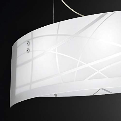Sospensione Ge-nereide Sm E27 Led 64cm Vetro Bianco Serigrafato Lampadario Moderno Interno