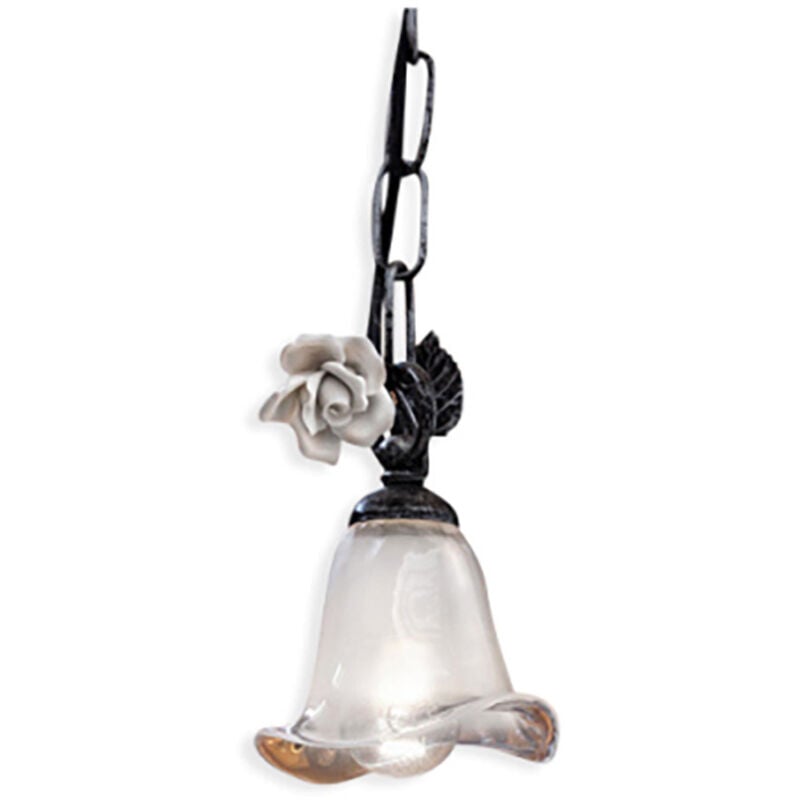 Collezione Classic Siena LIBERAMENTE ISPIRATA ALLA NATURA Sospensione 1 Luce E14 diam.11 cm con montatura Nero Sfumato Argento frutto di una lavorazione eseguita rigorosamente a mano secondo le tecniche artigianali di una volta. Il vetro sabbiato sfumato dona alle lampade della linea Siena una delicata leggerezza che compensa la ricchezza delle lavorazioni artigianali delle rose in ceramica e dei rami frondosi in metallo. Per illuminare gli ambienti punteggiandoli con la forza rigogliosa della natura. Un connubio di diversi materiali che messi insieme hanno dato vita a questa creazione che con grazia decorerà il vostro appartamento sia classico che rustico. Posto all'ingresso sarà un biglietto da visita davvero chic! E' disponibile anche nei colori Argento, Bianco, Bianco Sfumato Argento, Bianco Sfumato Oro, Nero, Nero Sfumato Oro, Nero Sfumato Rame, Ruggine, Verde Sfumato Oro.
