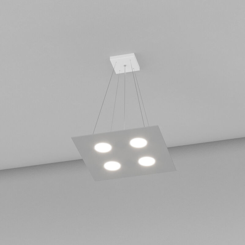Collezione Area IL FASCINO MINIMALISTA DELL'ILLUMINAZIONE SENZA LAMPADINE Sospensione 4 luci realizzata con lastre quadrate in metallo verniciato in finitura grigia di forma quadrata.. Il punto di forza del prodotto consiste nel non utilizzare dei led integrati ma una lampadina Gx53 che, una volta montata, arriva a filo della lastra metallica e può essere facilmente sostituita dall'esterno. Questo articolo è disponibile in diverse finiture e/o dimensioni. E' possibile indicarlo nell'apposito campo NOTE presente in conclusione di ordine oppure contattarci dopo aver effettuatol'ordine.