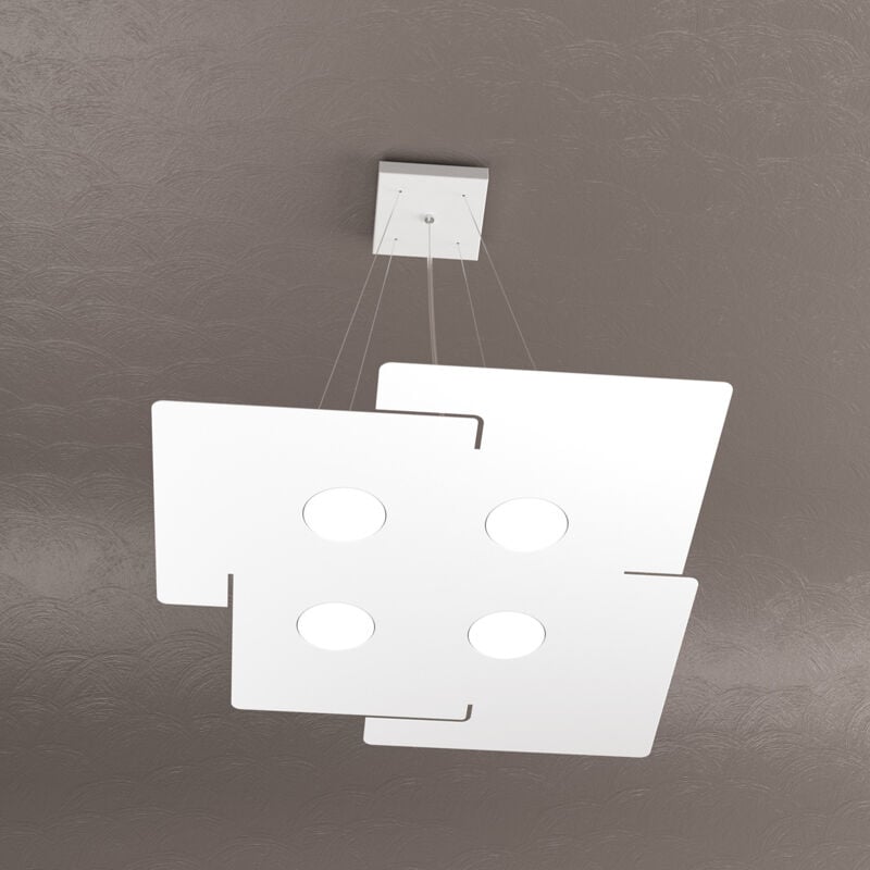 Collezione Echo LAMPADE CHE SI FONDONO CON LO SPAZIO Sospensione 4 luci realizzata con lastre quadrate in metallo verniciato bianco in diverse forme.. Queste lampade hanno un design essenziale e pulito, che si integra perfettamente con lo spazio e la luce. La lastra metallica è a filo con la lampadina Gx53, che puoi sostituire facilmente dall'esterno. La serie è disponibile in diverse dimensioni e forme, per adattarsi a ogni ambiente e a ogni gusto. Scopri la Serie Echo e lasciati impressionare dalla sua semplicità e qualità.Questo articolo è disponibile in diverse finiture e/o dimensioni. E' possibile indicarlo nell'apposito campo NOTE presente in conclusione di ordine oppure contattarci dopo aver effettuatol'ordine.