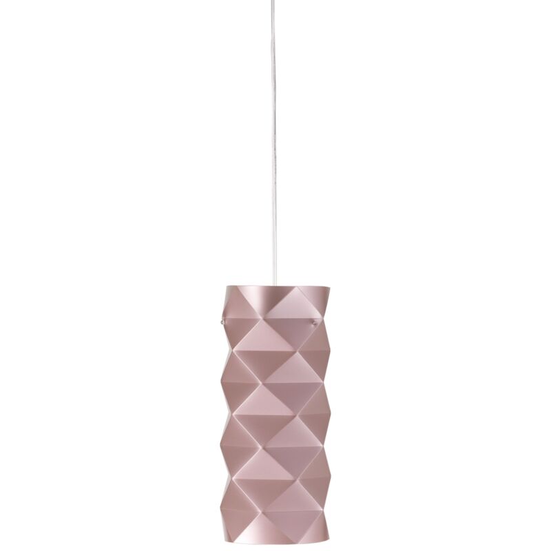 Collezione Prisma ISPIRATA ALL' ARTE E AI MOSAICI Sospensione moderna a 1 luce realizzata in polilux rosa metallico dotata di cavo trasparente regolabile lungo 120 cm e rosone in metallo cromato. Impreziosita da sfaccettature piramidali, trae ispirazione dall'arte, dai mosaici pavimentali geometrici, le forme triangolari, incise della Prisma, giocano con il concetto di luci e ombre per ricreare l'effetto a mosaico. Disponibile in diverse misure e finiture di colore, con un forte impatto visivo donerà eleganza e raffinatezza ad ogni ambiente moderno e contemporaneo.