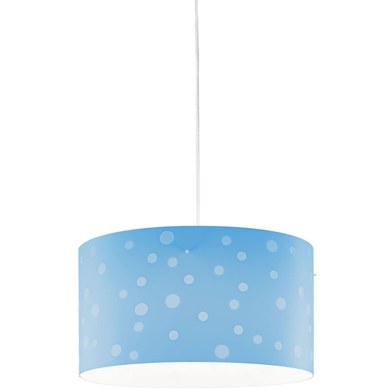 Collezione Pois ESSENZIALI E STRAVAGANTI Sospensione a 5 luci in polilux blù e rosone in plastica bianco. Il lampadario grande colorato e disponibile in tanti colori, perfetto per illuminare ambienti moderni, b&b, asili, ludoteche, camerette, si integra perfettamente con qualsiasi arredamento, contemporaneo valorizzandone l'insieme, per un risultato davvero brioso e vivace. Cavo ad altezza regolabile. Il bicolor diventa divertente e pop nelle lampade della collezione Pois, essenziali nella sagoma ma stravaganti nell'estetica.
