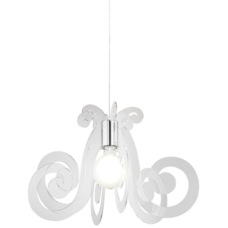 Collezione Space Collection UNA COLLEZIONE STELLARE Sospensione moderna a 1 luce in metacrilato trasparente, dotata di cavo trasparente regolabile lungo 120 cm e rosone in metallo cromato. Disponibile in diverse finiture di colore, come tutta la Space collection. Mizar, eclettica ed elegante, diventa un ottimo compromesso tra vintage e contemporaneo, donando all'ambiente movimento e ricchezza.