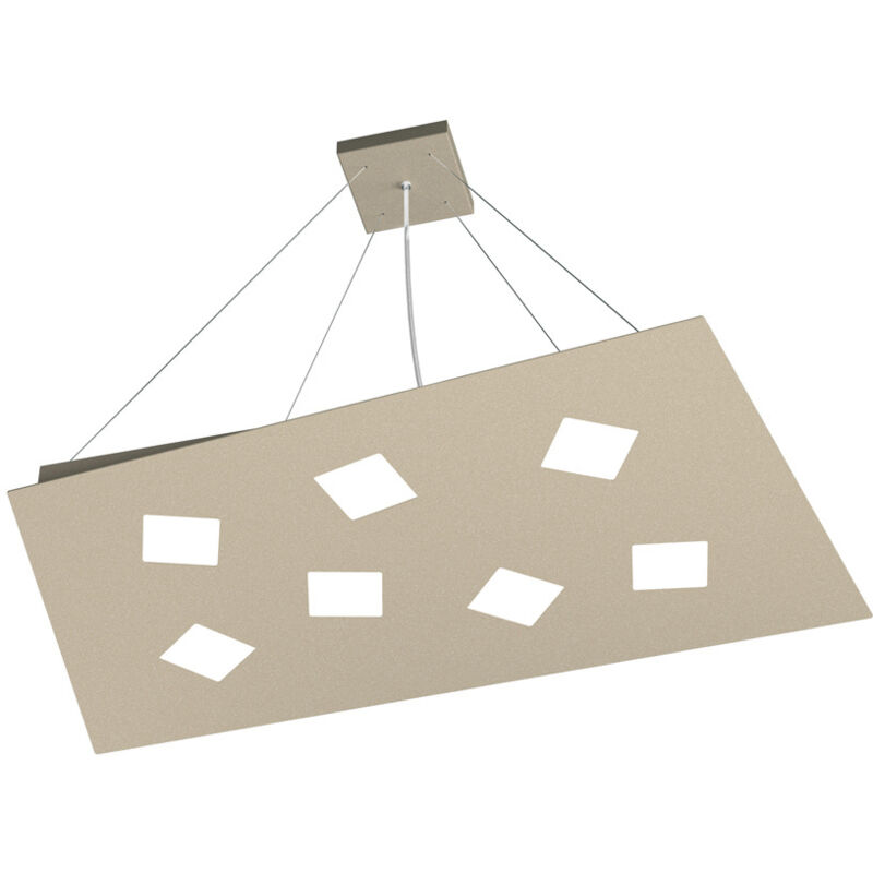 Collezione Note RENDI IL TUO AMBIENTE UN'ARMONIA LUMINOSA Sospensione formata da una lastra in metallo con forma irregolare verniciata finitura sabbia.. Il punto di forza del prodotto consiste nel non utilizzare dei led integrati ma lampadine Gx53 che possono essere facilmente sostituite. Tutte le sospensioni sono regolabili in altezza mediante gli appositi serracavi automatici. Disponibile anche la versione sospensione 7 luci più 4 luci.Questo articolo è disponibile in diverse finiture e/o dimensioni. E' possibile indicarlo nell'apposito campo NOTE presente in conclusione di ordine oppure contattarci dopo aver effettuatol'ordine.