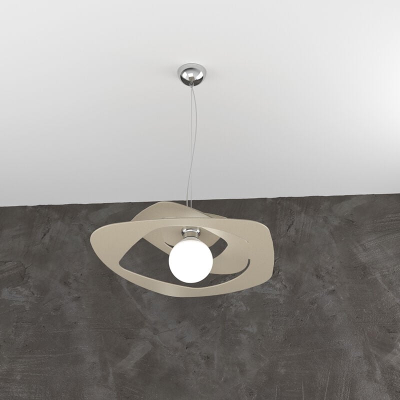 Collezione Warped UN'ILLUMINAZIONE MODERNA DAL FASCINO DISTORTO Sospensione composta da una struttura cromata che sostiene un diffusore metallico realizzato con tecnologia laser.. Il diffusore finitura sabbia è caratterizzato da una sagoma triangolare non uniforme. Le montature delle sospensioni possono essere regolate in altezza mediante l'apposito serracavo automatico.Questo articolo è disponibile in diverse finiture e/o dimensioni. E' possibile indicarlo nell'apposito campo NOTE presente in conclusione di ordine oppure contattarci dopo aver effettuatol'ordine.