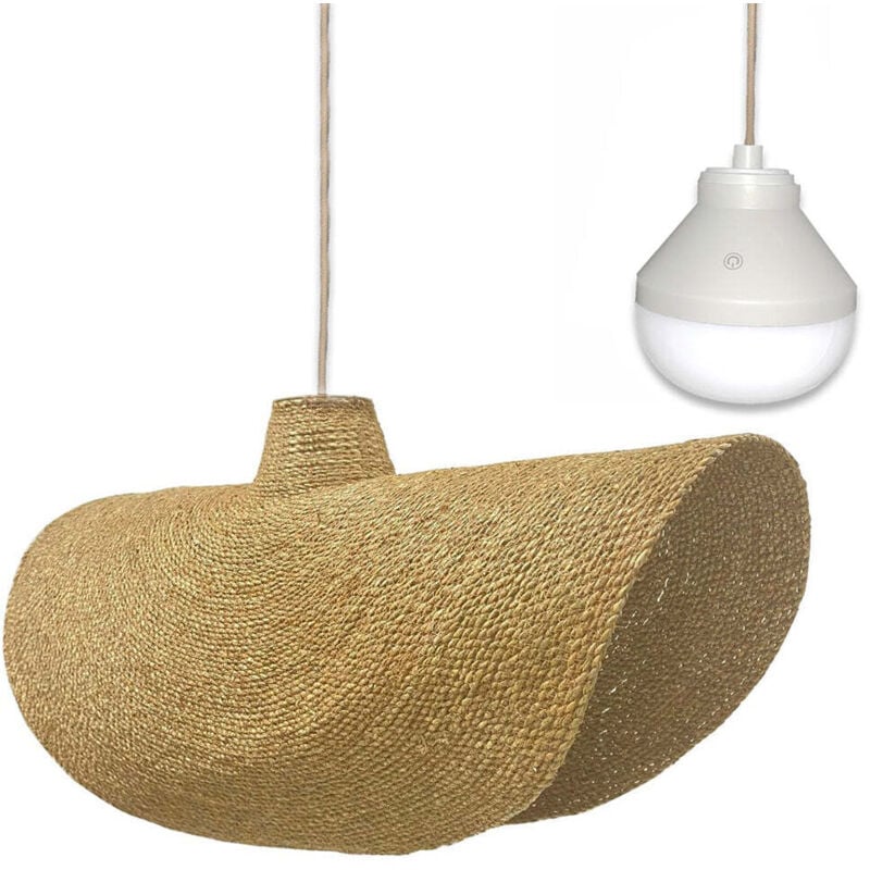 SOSPENSIONE IN ERBA DI MARE: la lampada a sospensione KLEIA NOMAD, realizzata a mano, è fatta di erba di mare intrecciata. Esotica e calda, illuminerà un interno moderno e si adatterà perfettamente a uno stile più bohémien o vintage grazie al suo aspetto etnico chic. Il suo intreccio unico valorizzerà il vostro spazio abitativo. Dimensioni: 32 x 32 x 93 cm NOMAD: KLEIA NOMAD è dotata di una lampadina LED LYS a stelo (bianca e multicolore) e può essere appesa ovunque grazie al suo cavo naturale. La piastra metallica può essere utilizzata per posizionare la lampadina magnetizzata sotto di essa o per appenderla utilizzando il gancio in dotazione. La lampadina LYS nomad è dotata di un telecomando per il funzionamento a distanza. QUALITÀ: Il paralume KLEIA NOMAD è un prodotto di qualità che soddisfa tutte le norme europee vigenti. MATERIALE NATURALE: Il paralume KLEIA NOMAD è realizzato in rattan naturale. Questo materiale è allo stesso tempo flessibile e rigido e consente di realizzare