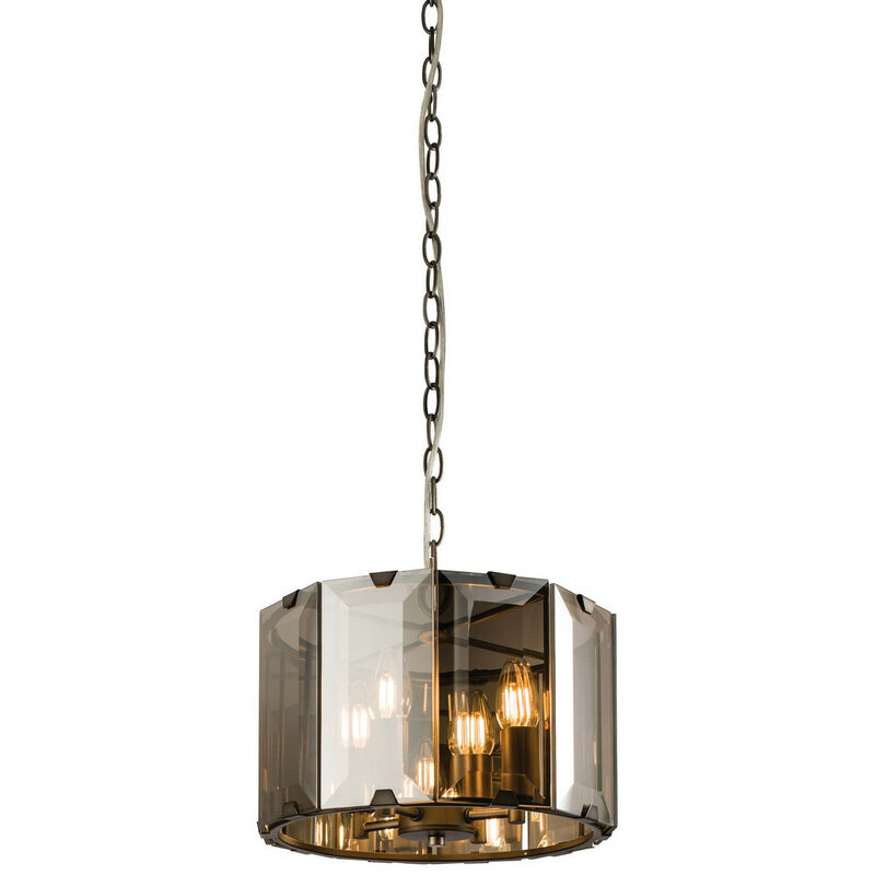 Endon - Sospensione a soffitto a 4 luci con vernice lucida grigio ardesia, vetro affumicato, E14 | Finitura: vernice lucida grigio ardesia scura, vetro tagliato a fumo | Materiale: vetro, acciaio | Classificazione IP: IP20 | Altezza (cm): 122 | Diametro (cm): 35 | No. di luci: 4 | Tipo di lampada: E14 | Lampadina: candela | Dimmerabile: sì