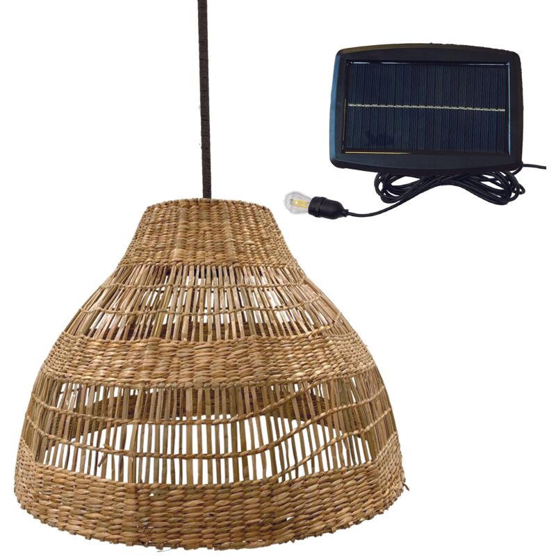 SOSPENSIONE A LED SOLARI: MERIDA SOLAR è una sospensione a LED solari di colore bianco caldo. Darà un tocco naturale al vostro arredamento. Esotica e calda, illuminerà un interno moderno e si adatterà perfettamente a uno stile più bohémien o vintage grazie al suo aspetto etnico chic. Il suo intreccio unico valorizzerà il vostro spazio abitativo. Dimensioni: 48 x 48 x H34 cm CAVO IBRIDO CON LAMPADA LED INTEGRATA: la lampada a sospensione solare MERIDA SOLAR è venduta con il suo cavo ibrido per esterni ENNA SOLAR, che consente di ricaricare la lampada utilizzando il suo pannello solare o collegandola alla rete elettrica. Il cavo è dotato di una lampadina LED integrata. La lampada ha un'intensità luminosa di 80 lumen ed emette una luce bianca calda. USO ESTERNO: dopo una rapida carica solare, potrete utilizzare questa lampada di design ovunque, all'interno o all'esterno. È una scelta di illuminazione ecologica che aggiunge un tocco personale e rustico a qualsiasi spazio. AUTONOMIA: la